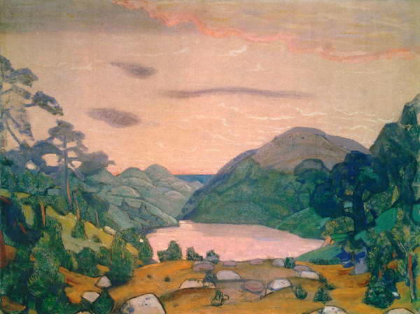 Юный Рерих пишет этюды об охоте, очерки о лесном озере с вязким дном, которое называется Глухим, и о другом озере, что не замерзает зимой, — говорят, что в нем бьют горячие ключи, хотя, вероятнее всего, это лишь сильные ключи. Мальчик знает лес и поле, луга и небо в любое время года, в любой час суток, в предрассветной весенней тишине, в дремотном зимнем безмолвии, в осенних шелестах листопада и летнем разнотравье.