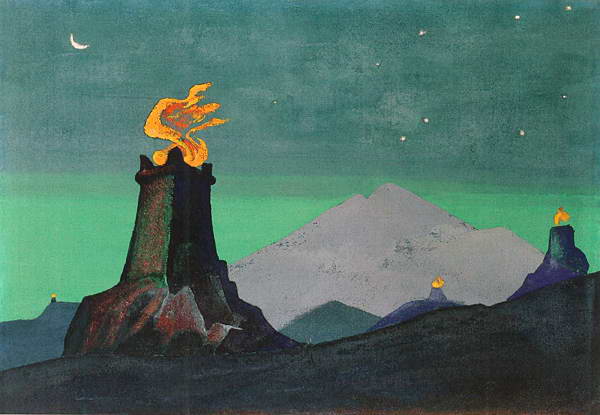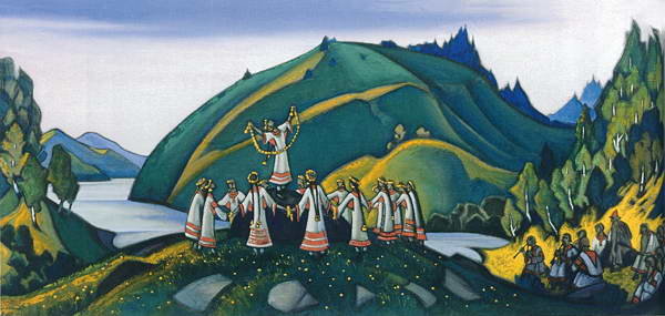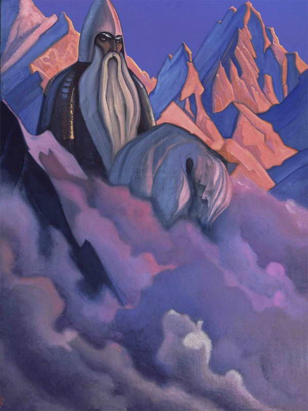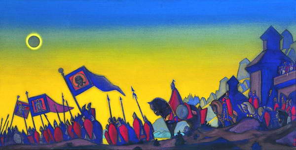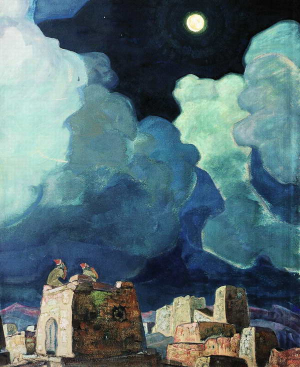 Конечно, к нему благоволит учитель рисования — и в классе Рерих занимается изрядно, и для традиционного гимназического «гоголевского вечера» делает эскизы декораций, программы с портретом любимого писателя. Гоголь действительно — автор любимых книг, причем не «Ревизора», не «Шинели», не роскошного летнего дня Сорочинской ярмарки, но «Вия», но «Страшной мести» — ночных сказаний о духах земли, о прозрачных хороводах утопленниц, о зловещем огромном Всаднике, вставшем над горами: «За Киевом показалось неслыханное чудо. Все паны и гетьманы собрались дивиться сему чуду: вдруг стало видимо далеко во все концы света. Вдали засинел Лиман, за Лиманом разливалось Черное море. Бывалые люди узнали и Крым, горою подымавшийся из моря, и болотный Сиваш. По левую руку видна была земля Галичская.