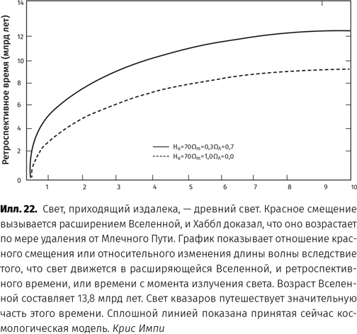Лаплас, очевидно, не знал о работе Мичелла. В двухтомном труде по астрономии он кратко упоминает идею темной звезды, и, по его мнению, гравитация этой гипотетической звезды намного сильнее, чем у Солнца: «…Следовательно, не исключено, что самые большие из светящихся тел являются по этой причине невидимыми». Коллега потребовал у Лапласа математическое доказательство этой гипотезы, и три года спустя, в 1799 г.[8], оно было представлено. Расчеты Лапласа – как и расчеты Мичелла – оказались ошибочными, причем по одной и той же причине. Самой плотной субстанцией, известной в те времена, было золото – в пять раз плотнее Земли и в 14 раз плотнее Солнца. Вероятно, ученый того времени с трудом мог представить, каким будет состояние в миллионы раз более плотной материи, а это необходимо для современного понимания черной дыры (илл. 1). В 1799 г. Томас Юнг сумел доказать, что свет ведет себя как волна, но то, что гравитация может замедлить волну, представлялось невероятным. Возможно, именно поэтому Лаплас исключил всякое упоминание о темных звездах из последующих изданий своей книги.