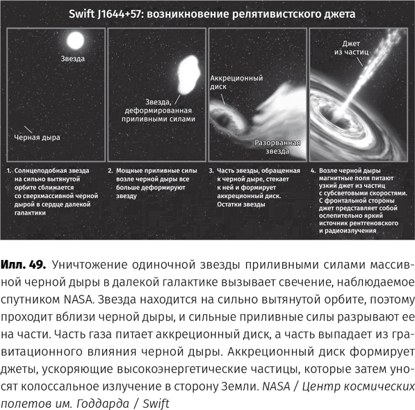 Изучая «места обитания» черных дыр, мы познакомимся с бинарными системами, где черная дыра кружится в гравитационном вальсе с нормальной звездой. Мы узнаем, что самое убедительное доказательство существования черных дыр находится в центре нашей Галактики, где десятки звезд роятся, как разъяренные пчелы, вокруг темного объекта весом 4 млн солнечных масс. Когда массивные черные дыры, имеющиеся во всех галактиках, выходят из спячки и начинают расти, их видно с расстояния в миллиарды световых лет. Эти гравитационные механизмы являются самыми мощными источниками излучения во Вселенной.