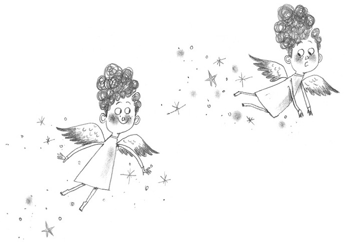 Берт идёт домой. Небо расчерчено оранжевыми и красными полосами — следами заката. А в другой части неба, где потемнее, прямо над горизонтом сияют звёзды. Берт идёт через сквер. Всходит месяц, прибавляя света вокруг. Берт замедляет шаг. Снова вынимает ангела, ставит себе на ладонь. Ангел встряхивает крылышками — они мерцают и поблёскивают в лунном свете. Именно так и должен выглядеть ангел, именно так.
