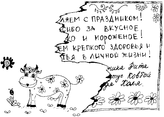 Вот мы и послали знакомой Корове открытку с красивыми ромашками и всякими хорошими словами.