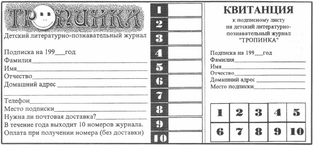Подписаться на «Тропинку» на 1998 год Вы можете с любого номера. Порядок подписки: