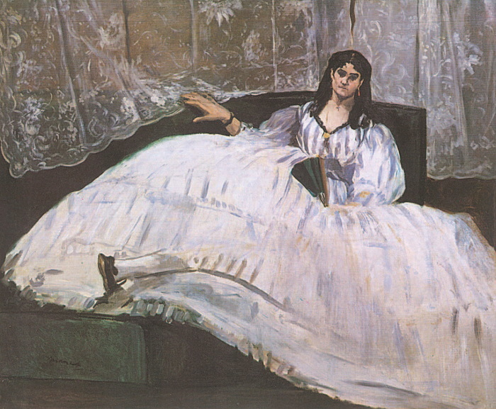 (обратно)Во французской версии последние слова четверостишия, написанного Бодлером, пришедшим в восторг от картины Мане «Лола из Валенсии»; портрет танцовщицы произвел на поэта такое впечатление, что он потребовал начертать эти строчки либо внизу картины, либо на ее раме. Вот они в переводе В. Левика:
