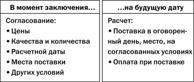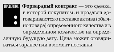 Допустим, в начале сентября вы решили приобрести новую машину. После того как выбрана марка, в демонстрационном зале местного дилера вы задаете точные характеристики автомобиля: цвет, мощность двигателя, отделку руля и т. п., и самое главное – определяете цену. Дилер говорит, что если заказ сделать сегодня и внести депозит, то машина будет поставлена через три месяца. Что произойдет с ценами через три месяца, будет ли предложена 10-процентная скидка или, наоборот, ваша модель подорожает, уже не имеет значения: цена машины при поставке зафиксирована соглашением между вами и дилером. Был заключен форвардный контракт – вы приобрели право купить автомобиль через три месяца и обязались совершить эту покупку.