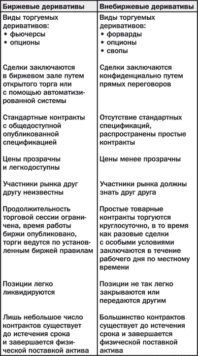 В настоящее время существует четыре основных вида деривативов, которые рассматриваются в последующих разделах этой книги: