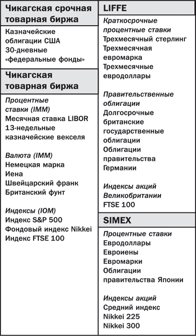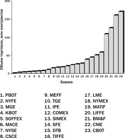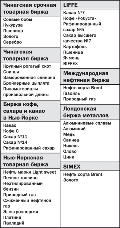 (обратно)Список публикуется с разрешения компании Numa Financial Systems Ltd. Настоящий список воспроизводится в соответствии с указателем фьючерсных рынков и опционных бирж Numa Directory of Futures & Options Exchanges, который можно найти на сайте www.numa.com/ref/exchange.htm. Издатели не несут ответственности за возможные неточности в приведенном ниже перечне. С вопросами, пожалуйста, обращайтесь к компании Numa Financial Systems Ltd через ее домашнюю страницу www.numa.com.