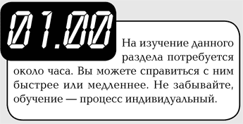 Прежде чем начать изучение книги, решите, что вы хотите от нее получить. Если знания нужны вам для работы, заручитесь поддержкой руководства и обсудите возможность выделения времени на ваше самообразование. Хотя стиль усвоения материала у каждого сугубо индивидуален, наилучших результатов можно достичь при регулярных занятиях продолжительностью около 30 минут. Примите это время за основу. Занятия урывками в перерывах между делами не будут эффективными. Планируйте учебу так же, как вы планируете деловые встречи.