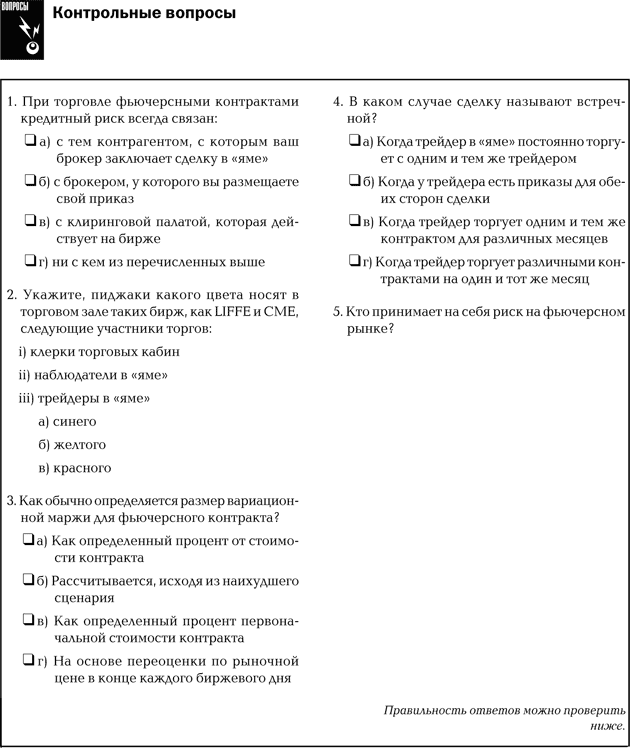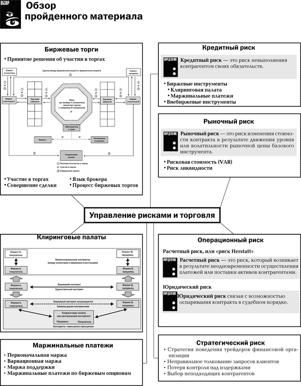 Этот раздел посвящен различным видам рисков и их влиянию на торговлю и трейдеров. Здесь более детально объясняются организация биржевой торговли и принципы функционирования клиринговых палат.