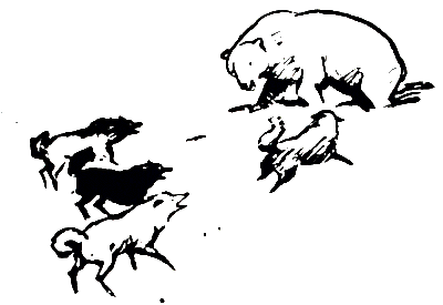 Иногда в морозной дымке воздуха появляется силуэт большой птицы — это полярная сова неслышными взмахами широких крыльев летит на свою охоту. На мгновение остановившись в парящем полете, скользит на одно крыло и исчезает. Начинает темнеть. Поворачиваю обратно и отмериваю шаги к виднеющимся из-под снега трубам наших домиков. От яранг чукотского селения доносится нестройный хор собачьих голосов. Временами слышится гортанный окрик — мгновенная тишина, и снова звуки завывающего лая ездовых собак.