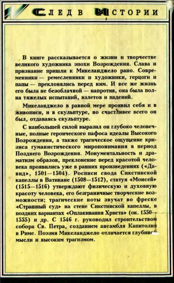 Все чувства Микеланджело были в таком напряжении, что он принял слова Гирландайо всерьез.