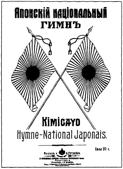 Европейцы заставили японцев не только именоваться японцами. Под их непосредственным влиянием Япония озаботилась также «современной» государственной атрибутикой, в том числе и гимном (до этого ничего такого и в помине не было). Но при выборе текста гимна японцы поступили совершенно нетривиальным образом, ибо ничего нового сочинено не было. Наоборот, из поэтической антологии начала X в. «Кокинсю» («Собрание старых и новых песен») было взято пятистишие неизвестного автора (чтобы никому, значит, не стало обидно). В этом пятистишии танка («короткая песня») провозглашалась здравица государю: