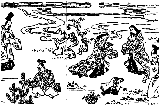 (обратно)В оригинале сказано, что стихи были написаны не знаками хираганы, приличествующими поэтическому посланию, а знаками катаканы, которая использовалась в официальных документах.