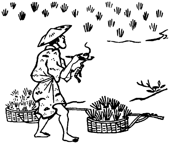 Осенью государь тайно набрал глины с горы Амэ-но Кагуяма, изготовил восемь десятков плоских священных блюд, самолично очищение совершил, всех богов почтил и, в конце концов, сумел успокоить Поднебесную. Поэтому место, где он набрал глины (хани), именуется Ханиясу, Успокоение Глиной.