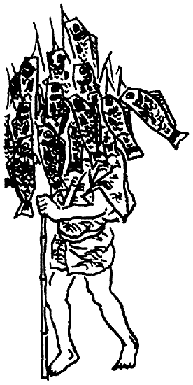 Как уже говорилось, первоимператору Японии Дзимму сопутствовал военный успех, когда он бился спиной к солнцу. Поэтому и средневековые военачальники тоже старались использовать этот прием. Имея в руках веер с солярной символикой или же флаг с изображением солнца за спиной, они таким образом «ослепляли» противника, ибо победа всегда принадлежит тому, кто имеет солнце на своей стороне.