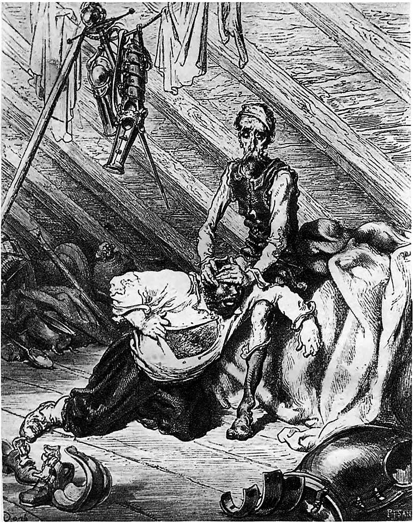 Удары судьбы один за другим обрушивались на Сервантеса. Рана, полученная им в морской битве при Лепанто 7 октября 1570 года, сделала его инвалидом. Захват пиратами галеры «Солнце», на которой Сервантес в 1575 году возвращался на родину, привел его к пятилетнему ужасному плену в Алжире. Сама слава пришла к Сервантесу, лишь когда ему исполнилось шестьдесят лет (до этого Сервантес говорил о себе ка к о писателе, который «одержал в стихах меньше побед, чем на его голову сыплется бед»). Беды, «сыпавшиеся на его голову», не озлобили его, не ожесточили его сердце; до конца своей многострадальной жизни он сохранял ясность ума, остроту творческого взгляда, любовь к людям, удивительное беззлобие и жизнелюбие, которыми дышит посвящение последнего его романа - «Странствий Персилеса и Сихизмунды», написанное, когда он уже «занес ногу в стремя» смерти, на другой день после совершения церковного обряда соборования. В гениальном испанце как бы нашли себе живое воплощение все положительные свойства чудесной души испанского народа: его доброта, здравый, насмешливый ум, чувство собственного достоинства, непреклонность в борьбе, душевная стойкость, то «врожденное верное чувство всего великого и благородного», которое Н. Г. Чернышевский считал характерным для испанского народа, сумевшего сохранить это чувство «в продолжение этих темных времен своей истории»[4].