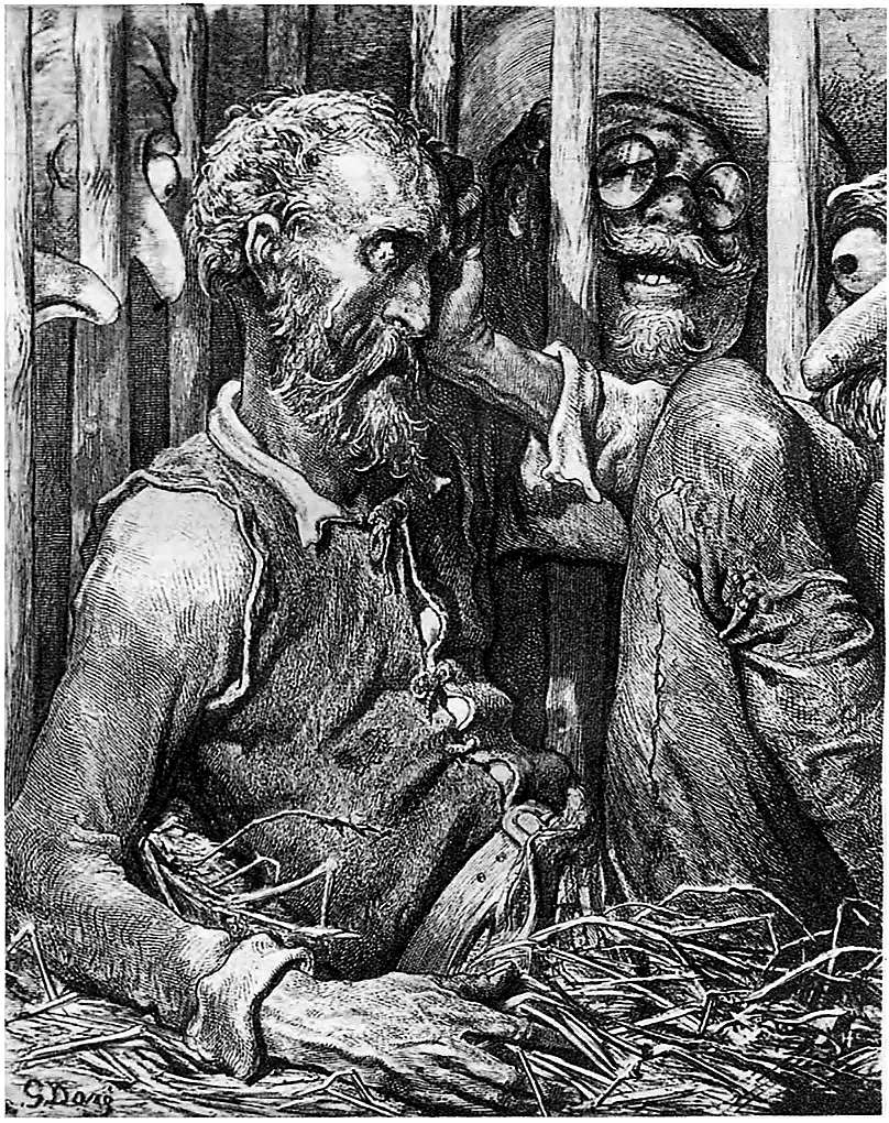 Бурной и тревожной, полной непрерывных взлетов и падений была жизнь испанцев того времени. Но вряд ли среди всех тех жизней, память о которых в форме биографий дошла до нас, найдется подобная жизни Сервантеса. Судьба как будто сознательно ополчилась против великого человека с самого его рождения. Начать с того, что нужда в самом своем неприглядном виде преследовала писателя с его появления на свет и до могилы. Сам Сервантес в своей поэме «Путешествие на Парнас» говорит о себе как о человеке, измученном проклятой нищетою. На вопрос одного кавалера из свиты французского посла о Сервантесе лиценциат Маркес Торрес, только что подписавший в качестве цензора разрешение к печати второй части «Дон Кихота», вынужден был ответить, что «он старик, солдат, идальго, бедняк». На это один из кавалеров, восторженно говоривших о творчестве Сервантеса, «о том уважении, которым пользуются во Франции и в сопредельных королевствах его творения», в недоумении воскликнул: «Значит, такого человека Испания не обогатила и не содержит на государственный счет» «Тут, - продолжает свою запись этого характерного разговора, происшедшего 27 февраля 1615 года, то есть немногим более чем за год до смерти писателя, Маркес Торрес, вмешался другой кавалер, высказавший остроумную мысль: «Если заставляет его писать нужда, дай бог, что бы он никогда не жил в достатке, ибо своими творениями, будучи сам бедным, он обогащает весь мир». Лиценциат мог бы ответить на заданные ему вопросы словами: государство не только не обеспечило писателя, но и самый его роман был начат, или по крайней мере задуман, в королевской тюрьме в Севилье в 1602 году. Это было третье по счету тюремное заключение писателя.