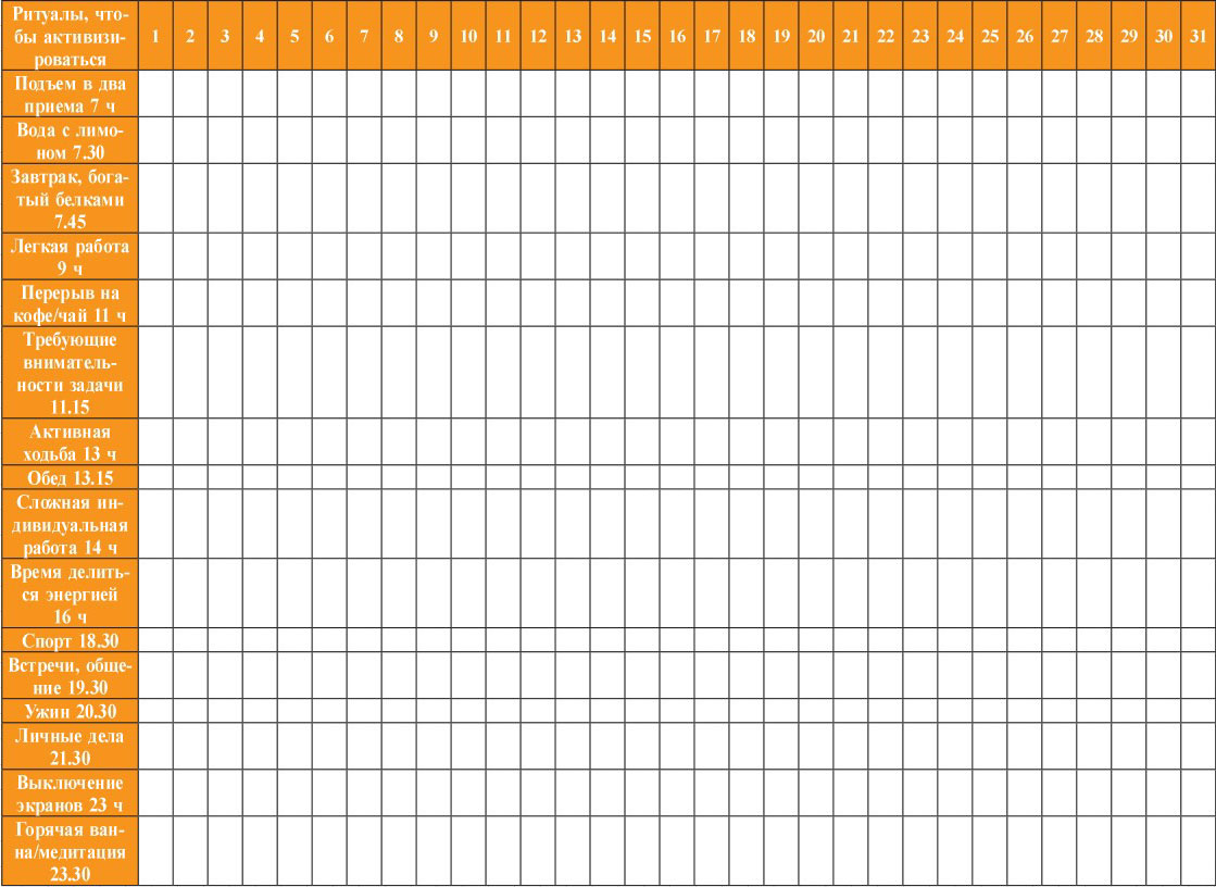 Вот вы и активизировали новую динамичную жизнь с учетом естественных ритмов вашего тела и природы. Браво! Теперь вы знаете, как с помощью многочисленных ритуалов оптимизировать свой день и поддерживать жизненную силу в повседневной жизни на протяжении всего года!