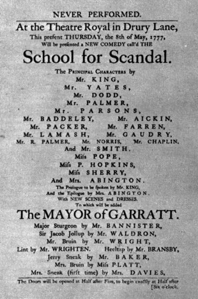 Век Шеридана благоприятствовал расцвету литературы. Со времени Дефо литература шла в самую гущу жизни, в народ. Обретая свободу, она становилась демократичной. Так, Шеридан отличался от драматургов эпохи Реставрации тем, что не старался выводить в своих пьесах аристократов. Его герои — не вельможи, а горожане, занимающие, правда, высокое общественное положение, но все же простые граждане, чуждые преклонения перед древними реликвиями и освященными веками традициями.
