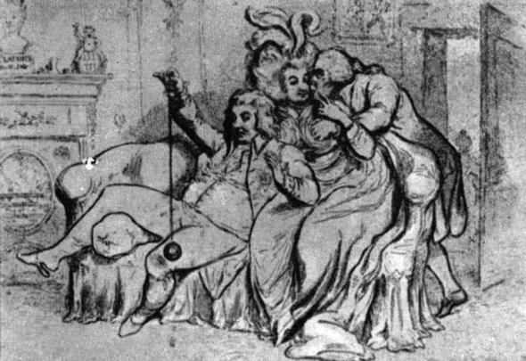 В 1773 году «макарони» — так называли тогда щеголей, следовавших европейской моде, — устраивали воскресными вечерами пышные карнавалы в парке Кенсингтон-гарденс; дамы наряжались молочницами, казаками, а некоторые из них, переодевшись в мужскую одежду, отправлялись послушать бурные дебаты в палате общин. Кавалеры не отставали от дам: секретарь наследного принца Джек Уиллет- Пейн явился однажды на бал-маскарад загримированным юной девицей — для пущего правдоподобия «девицу» сопровождала миссис Фицгерберт.