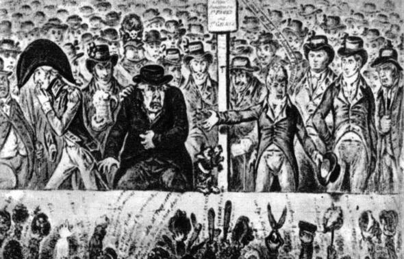 «29 января 1793 года. Г-н Шеридан спорит с г-ном Бутби Клоптоном на 500 гиней, что не позже чем через три года с момента заключения пари будет произведена реформа системы представительства английского народа».
