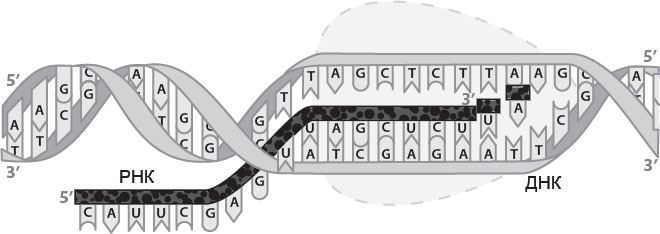 Рис. 2.3. Транскрипция: копирование гена из ДНК на матричную РНК