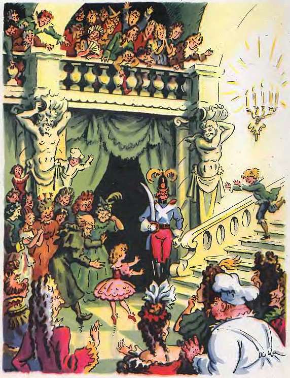 Здесь были все те зрители, которые рукоплескали ей на площадях и рынках. Но теперь их лица казались весёлыми и счастливыми. Люди теснились, лезли друг другу на спины, смеялись, шутили. Некоторые плакали от счастья.