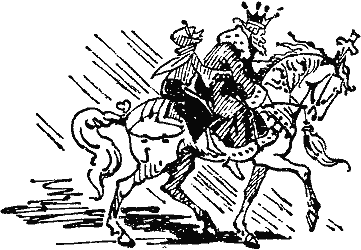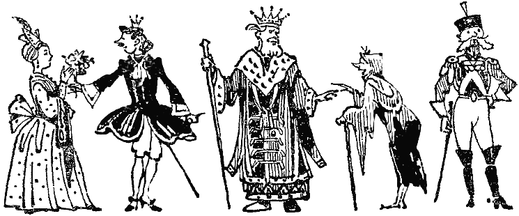 Царь. Экие вы все богачи — медных денег не держите. Погодите, а у меня, хоть я и царь, кажись, одна копеечка найдется. Давеча мы с королевичем в орла и решку играли…