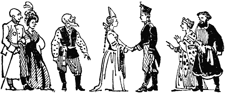 Царь. (отбивая ногой такт). Эх, и нам, может, потанцевать? Зря, что ли, музыканты стараются! Господа придворные, а ну!.. Фигура первая… Фигура вторая… Фигура третья…