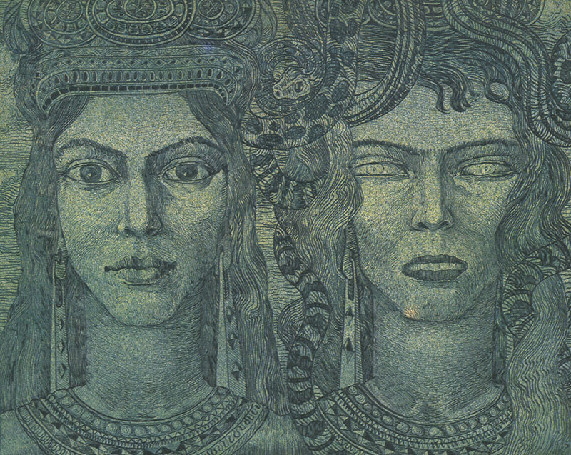 — М-м-м, да, — произнес Хонакура, улегся на дно лодки и устроился поудобнее. — Я говорил вам, светлейший, что Икондерина несколько раз упоминается в других сутрах. В одном случае говорится о «рыжеволосом брате Икондерины», в другом — о «черноволосом брате Икондерины». Вот и все. Рыжие волосы — большая редкость, но и совершенно черные тоже необычная вещь.