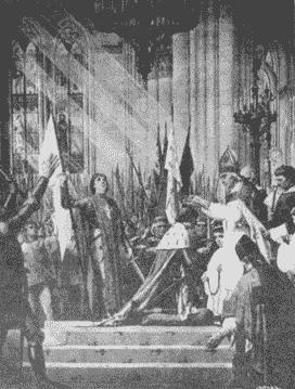 (обратно)Генрих IV Наваррский (1553–1610) – французский король с 1589 г. (фактически с 1594 г.), первый из династии Бурбонов. Сын Антуана Бурбона, с 1562 г. – король Наварры (Генрих Наваррский). Во время Религиозных войн глава гугенотов. После перехода Генриха IV в 1593 г. в католицизм Париж в 1594 г. признал его королем. Покончил с Религиозными войнами, издав Нантский эдикт (1598 г.), согласно которому католицизм оставался господствующей религией, но гугенотам предоставлялась свобода вероисповедания и богослужения в городах (кроме Парижа и некоторых других), в замках и ряде сельских местностей; они получили определенные политические права. Убит католиком-фанатиком Равальяком.
