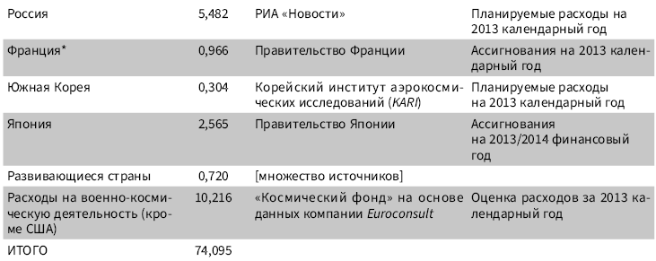 (обратно)Источник: «Космический отчет» за 2014 год, подготовленный «Космическим фондом», с разрешения «Космического фонда».