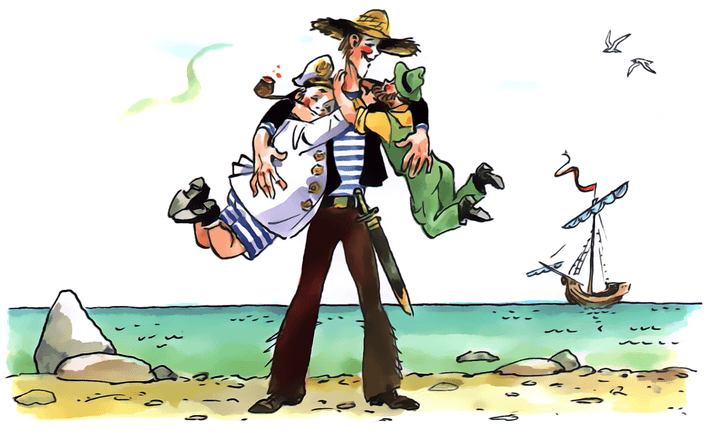 — Есть погулять до обеда! — гаркнул Лом, да так, что птицы тучей поднялись со скал, а эхо (я сосчитал) тридцать два раза повторило: «Беда… беда… беда…»