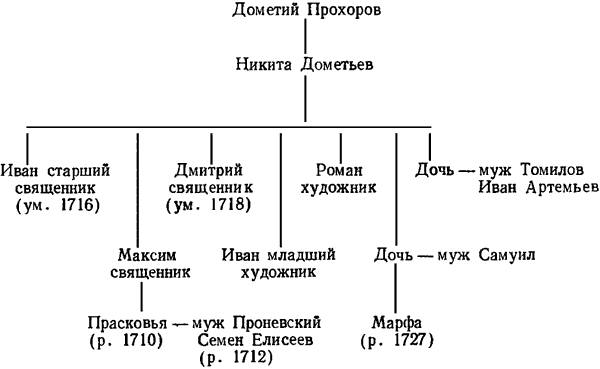 Кстати сказать, как же затрудняют исследователям поиски эти постоянные изменения имен. При поступлении в обучение ученик не знает иного имени, кроме уничижительного, и называют его по отчеству, где-то на переломе мастерства на смену отчеству приходит одна фамилия и только много позже может появиться, а может и никогда не появиться, полное «название» — с фамилией и отчеством. Так и утверждались подчас в наших справочниках под одним именем молодость без зрелости, под другим зрелость без юности. Установить их идентичность — научная проблема.