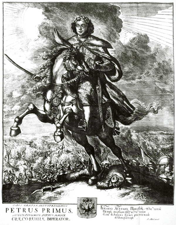 За все время пребывания Петра в Голландии можно найти единственный эпизод, имеющий отношение к искусству. Среди немногих частных собраний, привлекших внимание царя, было собрание древностей некоего де Вильде, дочь которого училась у гравера Адриана Схонебека. Здесь, по-видимому, и произошло знакомство Петра с гравером. Впечатление оказалось большим, и молодой царь со свойственной ему нетерпеливой жадностью захотел сам овладеть новым мастерством. Уроки состоялись, и памятью о них остался награвированный Петром лист: наступающая на полумесяц женская фигура с крестом в руке — отзвук турецких войн. Гравюра слабая, вытянутая многочисленными правками учителя, но зато с очень подробной любопытной надписью: «Петр Алексеевич, великий царь Русский, награвировал это иглою и крепкою водкою, под смотрением Адриана Шхонебека, в Амстердаме, в 1698 году, в спальне своей квартиры, на верфи Ост-индской компании». Знакомство с гравером было «домашним» в буквальном смысле слова. Прижимистый от природы, Петр не тратится ни на каких художников — свидетельство счетов неопровержимо, — зато полюбившемуся граверу идут постоянные платежи вплоть до мая 1698 года, когда выдается «амстардамцу Андриану Шхонабеку за резбу досок на огнестрельные вещи и за компасную доску и за книгу алтилерии 123 ефимка 10 алтын».