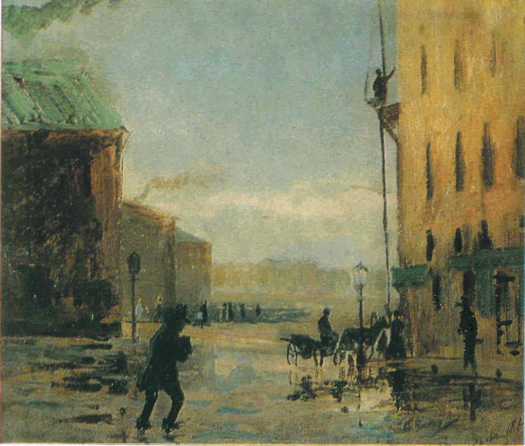 После дождя (Петербургская улица). 1867. Масло. Государственная Третьяковская галерея.