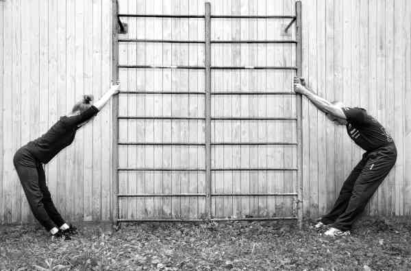 Форму тела удерживают кости, сухожилия, связки, надкостница, суставы. Как говорил Мечников, это наш мягкий скелет. То, как выглядит тело, уже многое говорит о здоровье и возрасте человека. Мышцы дают только движение, но они слишком слабые, чтобы удерживать форму тела. И когда начинают накачивать мышцы, чтобы удержать позвоночник, суставы, то это у меня вызывает, мягко говоря, улыбку. То, чем мы будем заниматься – это исправление формы путем колоссальных и в тоже время незаметных, очень приятных и хорошо контролируемыми нагрузок. Чтобы понять, о чем я говорю, попробуйте напрячь мышцы и сесть на шпагат, если раньше вы не садились. Ну что – теперь вы поняли разницу в силе мышц и связок? Мышцы – самая примитивная вещь. Они требуют много еды, много калорий и длительных, постоянных упражнений, чтобы не потерять форму. Но часто те, кто много уделяет вниманию мышцам, часто их качая, имеют с годами дряблое тело и обвисшие мышцы.