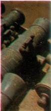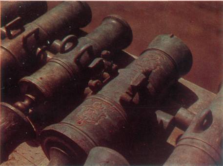 Даже при самом беглом осмотре таких пушек легко заметить, что оформление их стволов по сравнению со старинными значительно упрощено. На них нет длинных высокопарных текстов, изречений. Тем не менее почти все они снабжались гербами государств и различными девизами, что должно было напоминать воинам об их долге перед родиной. Оставить на поле сражения такую пушку считалось большим бесчестием для полка и для каждого воина. Часто случалось, что потерянную в бою пушку неприятель сразу обращал против ее же незадачливых владельцев. Вот почему среди лежащих на стендах стволов есть заклепанные железными ершами запальные отверстия.