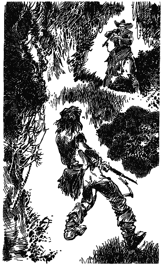 Кленси не слушал больше. Он направил лошадь сквозь легкое облако дыма, которое уже успело рассеяться. На равнине он увидел двух всадников: один гнался за другим; оба были огромного роста. Разбойник был впереди, охотник настигал его.
