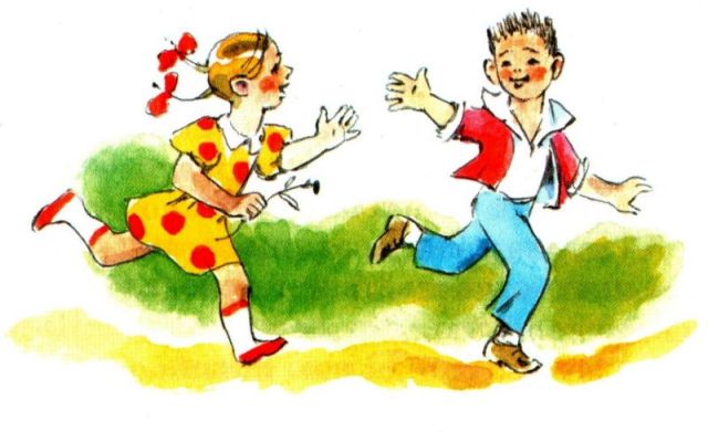 — Эх ты, — повторил он, — анютины глазки с косичками! Чем же мне тебя отдарить? Разве вот этим?