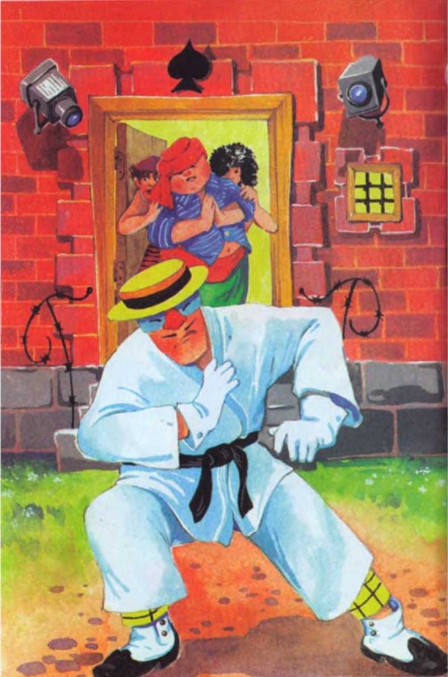 Но наши друзья не успели войти внутрь. На пороге встал Гениальный Сыщик в белом облачении бойца восточных единоборств. Да, да! Организатор чёрного дела оказался к тому же обладателем чёрного пояса.
