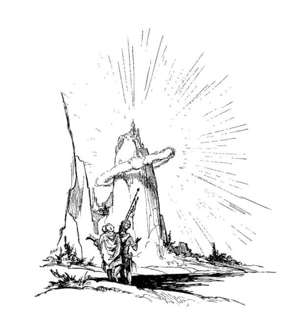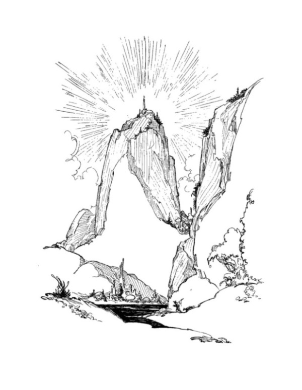 Затем колоссальная фигура, бывшая Дзелимом, склонилась во всём своём великолепии и коснулась Узолбы ослепительным пальцем. И, пока Узолба моргал от сияния, Дзелим говорил голосом, подобным далёкому грому, раскатывающемуся по небесам: — Отправляйся в путь, маленький брат и прими своё собственное решение. Мы будем ждать тут и обещаем не обрушивать наш гнев на алебастровый город, пока ты не вернёшься сюда. Смотри зорко, выбирай мудро. Мы дождёмся твоего прибытия, клянёмся в этом.