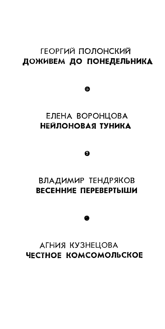 Предполагаю, что читатель этой книги видел фильм «Доживем до понедельника» (хотя это и необязательно). Поставлена картина по киноповести, которая перед вами. Я написал ее как дипломную работу на Высших сценарных курсах…