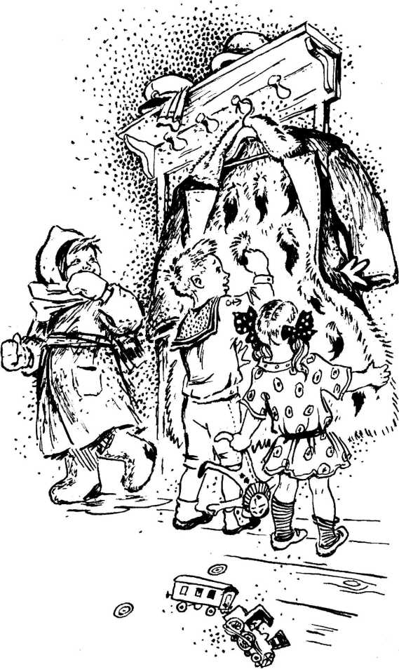 Мне очень жаль, что я не могу вам сказать, как зовут этого маленького человека, и где он живет, и кто его папа и мама. В потемках я даже не успел как следует разглядеть его лицо. Я только помню, что нос у него был в веснушках и что штанишки у него были коротенькие и держались не на ремешке, а на таких лямочках, которые перекидываются через плечи и застегиваются где-то на животе.
