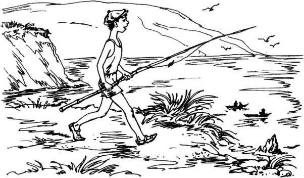 Вдруг подул ветер, вырвал у мальчика из рук удочку и бросил ее вниз.