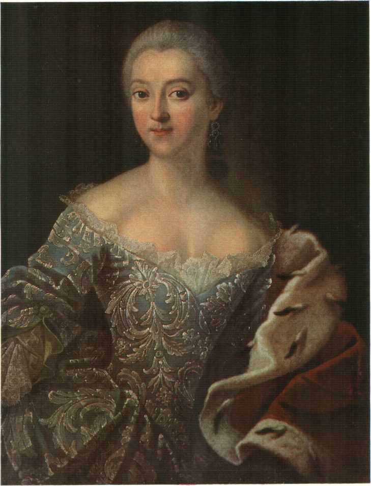 Средства огромной страны, добываемые тяжелым крепостным трудом, с безудержным размахом тратились двором императрицы на роскошные дворцы и парки, на празднества „на французский манер“. Воспитанная „среди новых европейских веяний и преданий благочестивой отечественной старины“ сама Елизавета „от вечерни шла на бал, а с бала поспевала к заутрене, благоговейно чтила святыни и обряды русской церкви, выписывала из Парижа описания придворных версальских банкетов и фестивалей, до страсти любила французские спектакли и до тонкостей знала все гастрономические секреты русской кухни“[27]. В этой атмосфере пышно расцветал портрет, в Россию снова потянулись иностранные живописцы. В 1756 году в Петербурге появляются блестящий представитель французского рококо Луи Токке и талантливый портретист-дилетант Пьетро Антонио деи Ротари. Парадные торжественные портреты императорской фамилии пишут и русские мастера — Антропов и Аргунов, причем последний сочиняет для своих хозяев — Шереметевых — ретроспективные изображения их предков, подражая в композиции Г.-Х. Грооту (в России с 1743 года) и западным гравюрам.