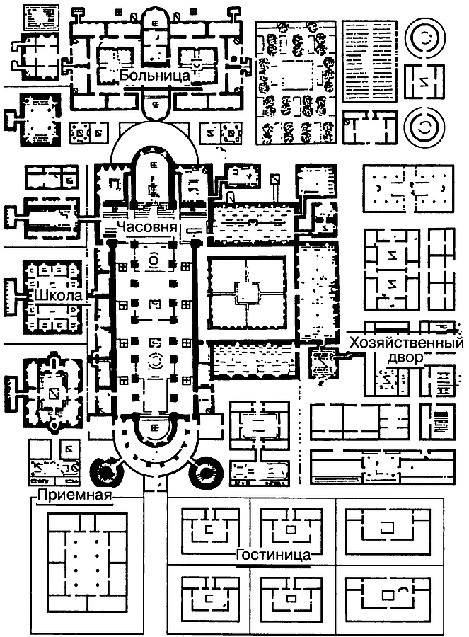 Основной отличительной чертой монастырей эпохи Карла Великого была их открытость для мирян. Паломники, путешественники, больные, ученики, богатые, бедные — в монастырских зданиях, школах, больницах, трапезных, мастерских можно было встретить людей всех званий и сословий. Достраивались и расширялись монастырские церкви, чтобы каждый, кто проходит мимо или же решил переночевать в монастыре, мог бы туда зайти; в церквях днем и ночью горели светильники, а на алтарях — свечи, дабы желающие почтить Господа могли это сделать в любое время суток. Монастырь — это пристанище и одновременно образцовое учреждение. И Карл, обрушивая свой гнев на дурно содержащиеся монастыри, напоминал, что они исполняют свою миссию не только в церкви, но и в империи в целом.