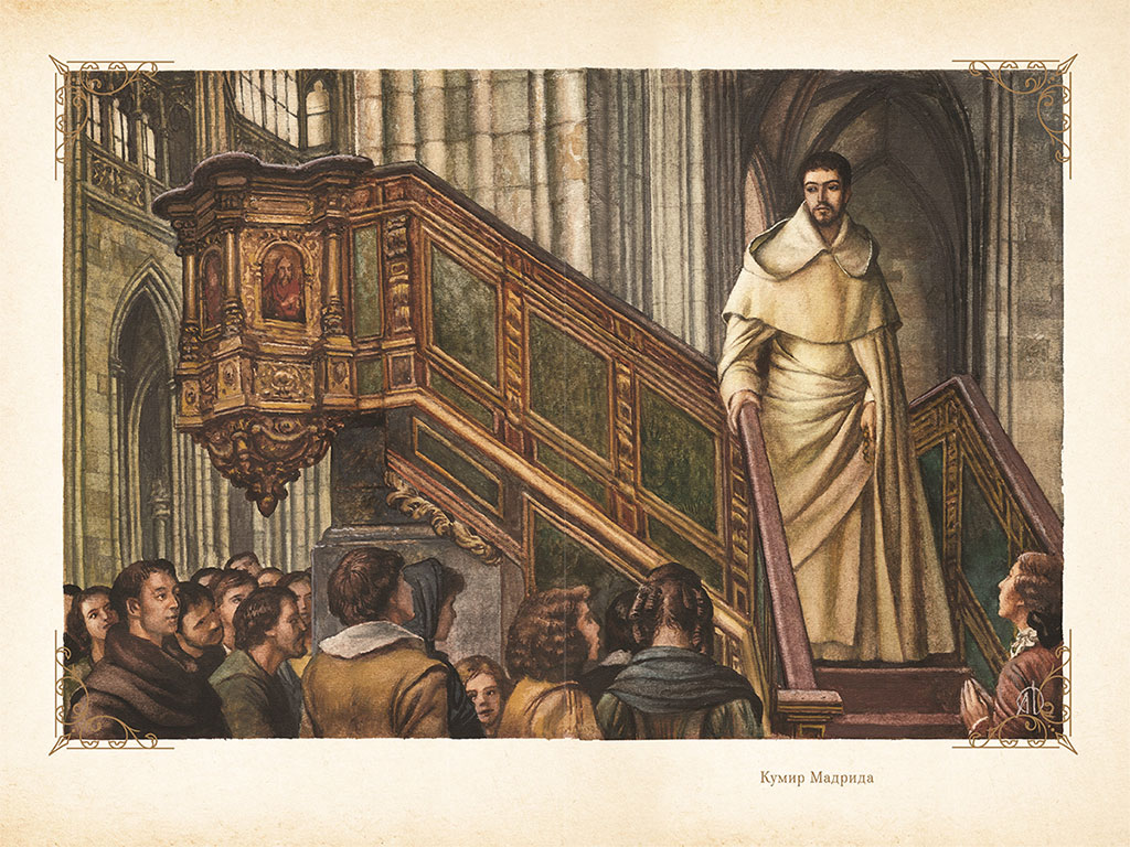 – Ну, в Мадриде оно у всех на устах. Похоже, он очаровал горожан, а я, еще ни разу не побывав на его проповедях, дивлюсь вызванному им восхищению. Поклонение, оказываемое ему старыми и молодыми, мужчинами и женщинами, беспримерно. Вельможи осыпают его подарками; их жены не хотят никаких исповедников, кроме него; в городе его называют святым человеком.