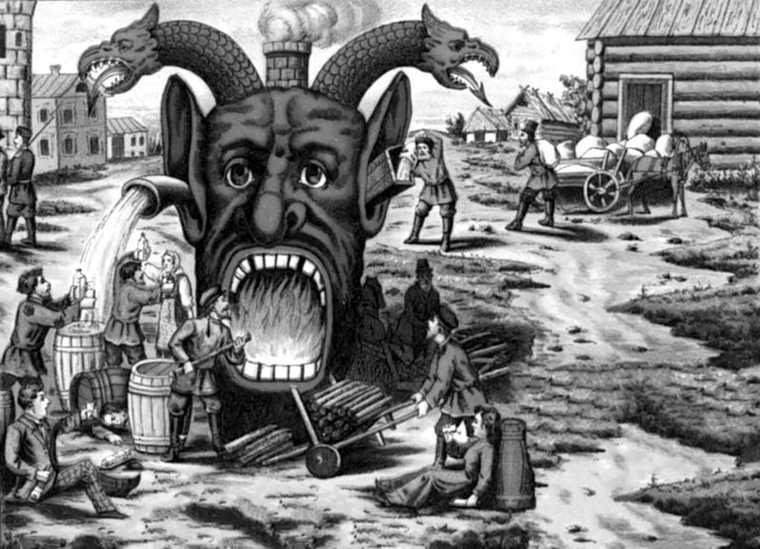 По словам историков, именно иностранцы, оставившие многочисленные и не всегда правдивые воспоминания, создали миф о повальном пьянстве русских людей. Вот что рассказывал австриец Адольф Лизек о московских жителях: «Не раз мы были свидетелями, как мужья лежали пьяные, без чувств, а жены садились возле них и, снимая с себя одежду за одеждой, закладывали целовальнику на вино и пировали до тех пор, пока теряли употребление рассудка и даже возможность пить, и тут же упадали на своих мужей».
