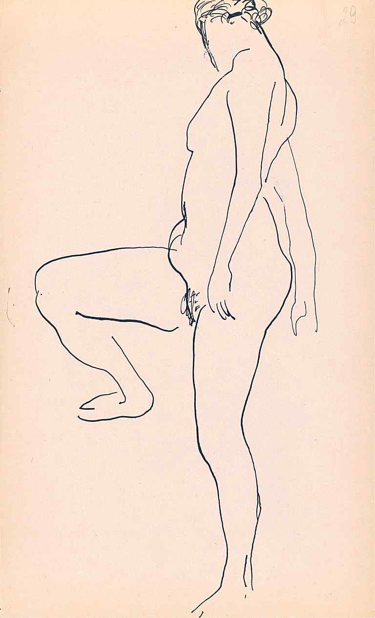 Есть и другая группа рисунков, менее обширная, но не уступающая первой по своему художественному значению. Лебедев приближается здесь к принципам «живописной» графики, о которых упоминалось выше. Линия играет в этих рисунках не преобладающую, а лишь вспомогательную роль. Обнаженное тело натурщицы не замкнуто строгим графическим контуром; оно понято и передано как живописная масса, неуловимо колеблющаяся в световой и пространственной среде. Весь этот цикл отмечен сильным влиянием рисунков Родена — влиянием, которое нельзя ограничить лишь суммой формально-технических приемов. В самом видении и понимании натуры Лебедев обнаруживает здесь черты роденовской страстности и, вместе, внутренней собранности, неизменного контроля разума над чувством. Он мог бы повторить вслед за великим французским ваятелем: «Обнаженное тело кажется мне прекрасным. Для меня оно — чудо, сама жизнь, где не может быть ничего безобразного»[15].